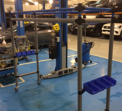 Nuestros módulos cubren diferentes necesidades para la operaciones en áreas de postventa en concesionarios, talleres de pintura y de alineación y balanceo. Desde racks de piso y pared para almacenamiento de partes en proceso de pintura o stocks, carros específicos para transportar piezas varias, como ser cubiertas o parabrisas, carros atriles o tableros para la organización y orden de las herramientas en taller, y también puestos de trabajo a medida. Estos permiten darle flexibilidad al área de taller, adaptándose al espacio de trabajo y usos. Hemos diseñados a su vez dispositivos mecánicos que permiten mejorar la ergonómia para las personas en por ejemplo, el posicionamiento de una cubierta en una balanceadora.